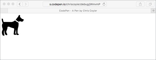 Where did this dog.svg file come from, though? Well, the Noun Project is a particularly great source of such images (http://bkaprt.com/psvg/00-01/). There are lots of other places online to get your hands on vector graphics, too. Pretty much all stock photography sites let you filter search results by âvector,â which is exactly what you need for SVG.