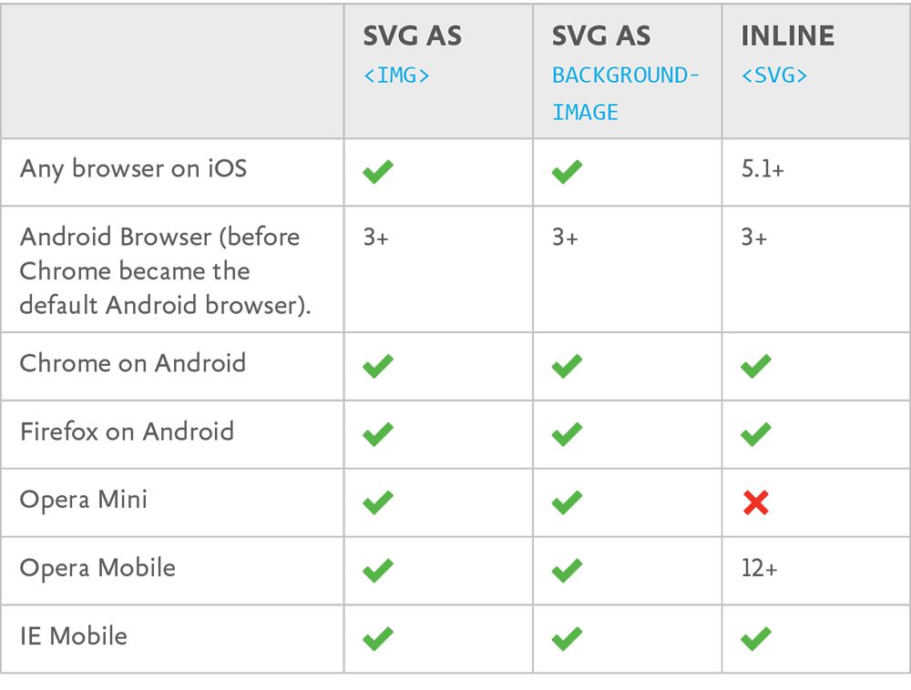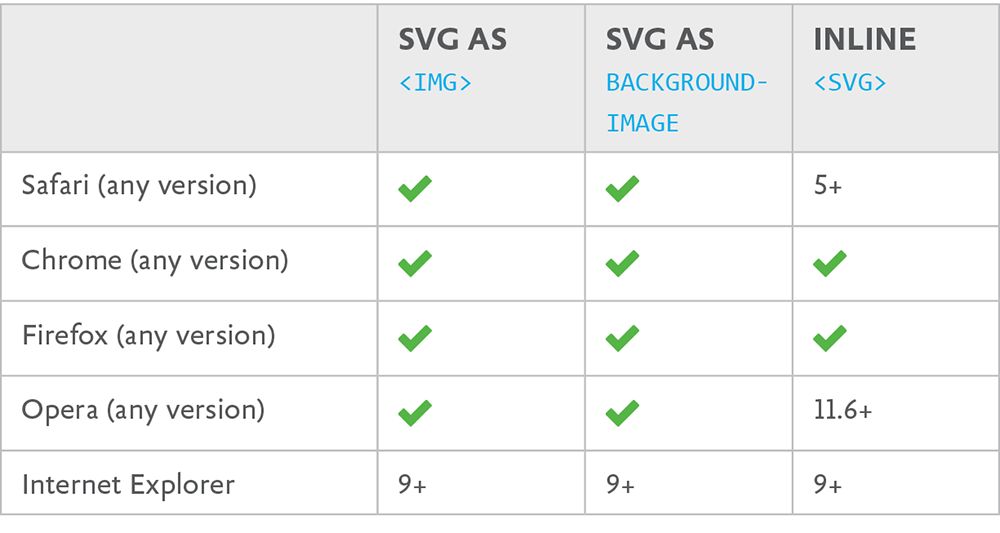 Letâs get more specific about browser support. After all, one thing that makes SVG so exciting is the excellent browser support it enjoys. A few notes first, though: